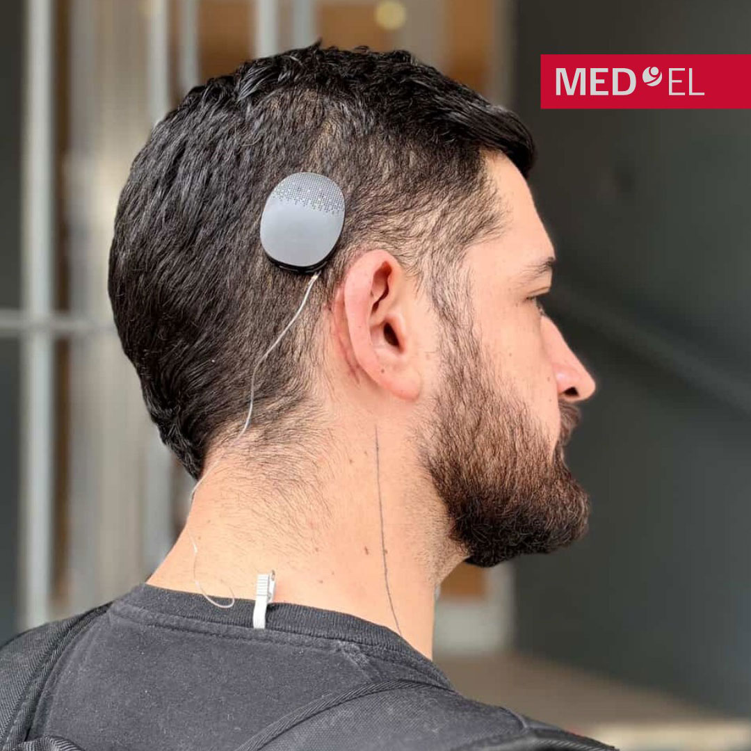 The device consists of an external component that rests behind the ear and an internal component surgically implanted beneath the skin.